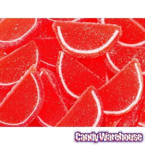 Box contains 5 pounds of unwrapped Red Raspberry Fruit Jell Slices Candy.