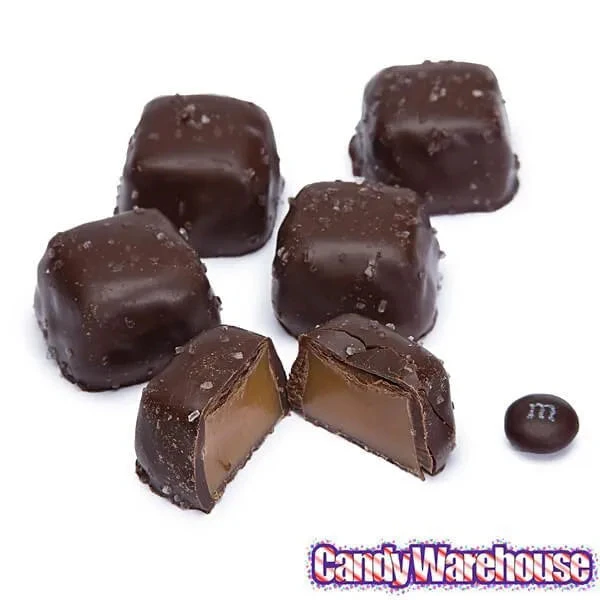 Tender caramel cubes are smothered in rich dark chocolate and then sprinkled with crystalline sea salt!