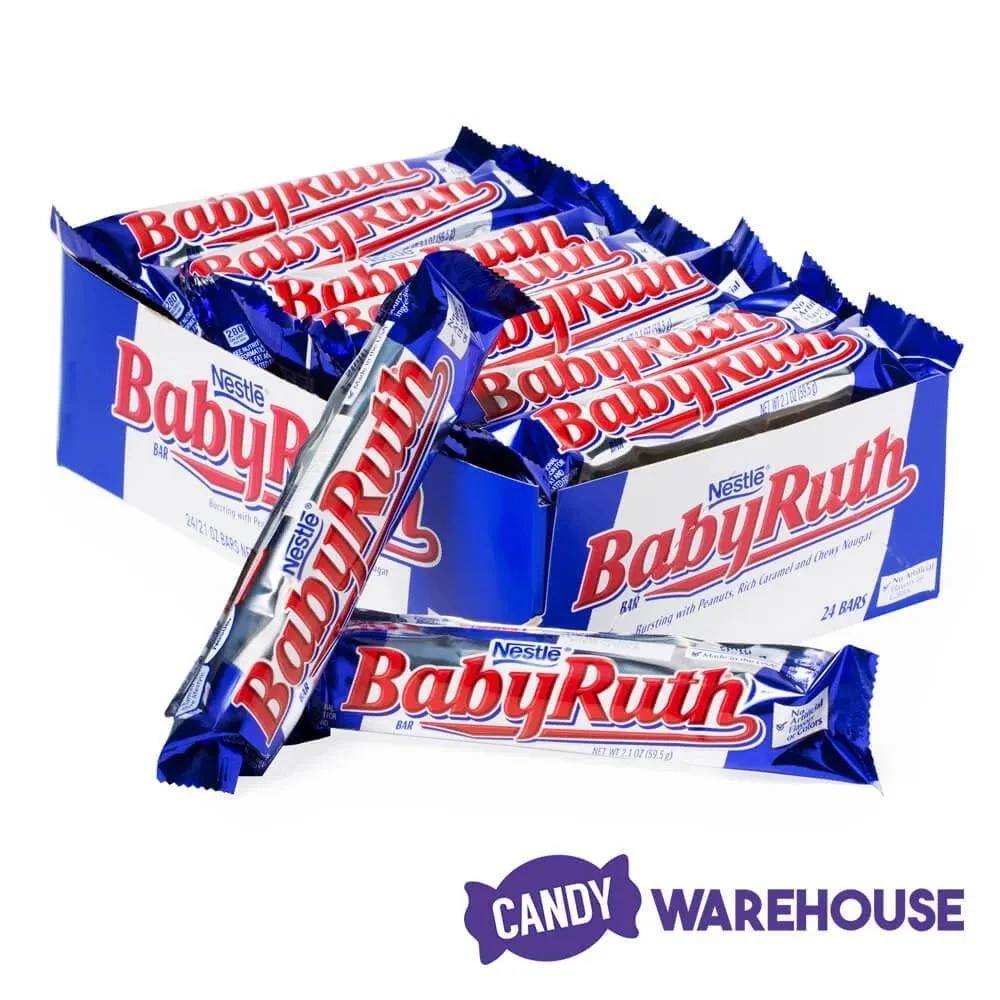 Box contains 24 bodacious Baby Ruth Candy Bars, each with a net weight of 2.1 ounces.