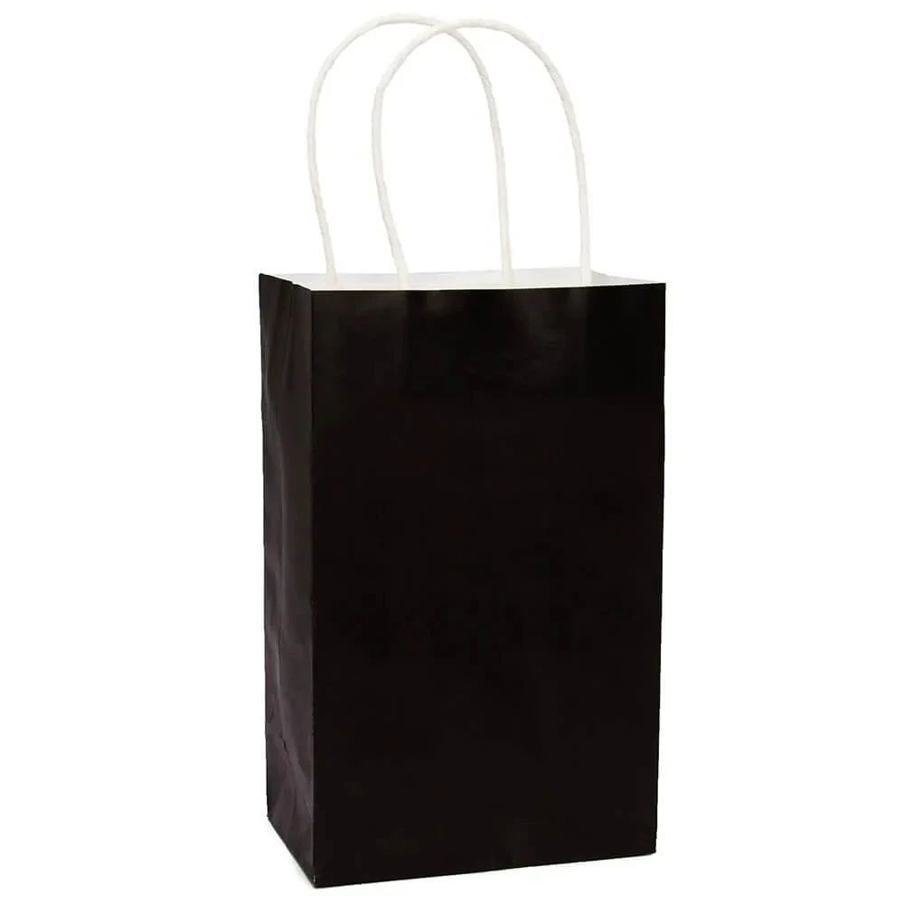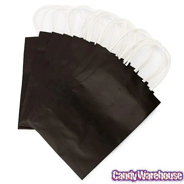 Pack contains 12 Black Candy Bags with Handles.