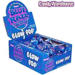 Display box contains 48 Charms Blue Razzberry Blow Pops.