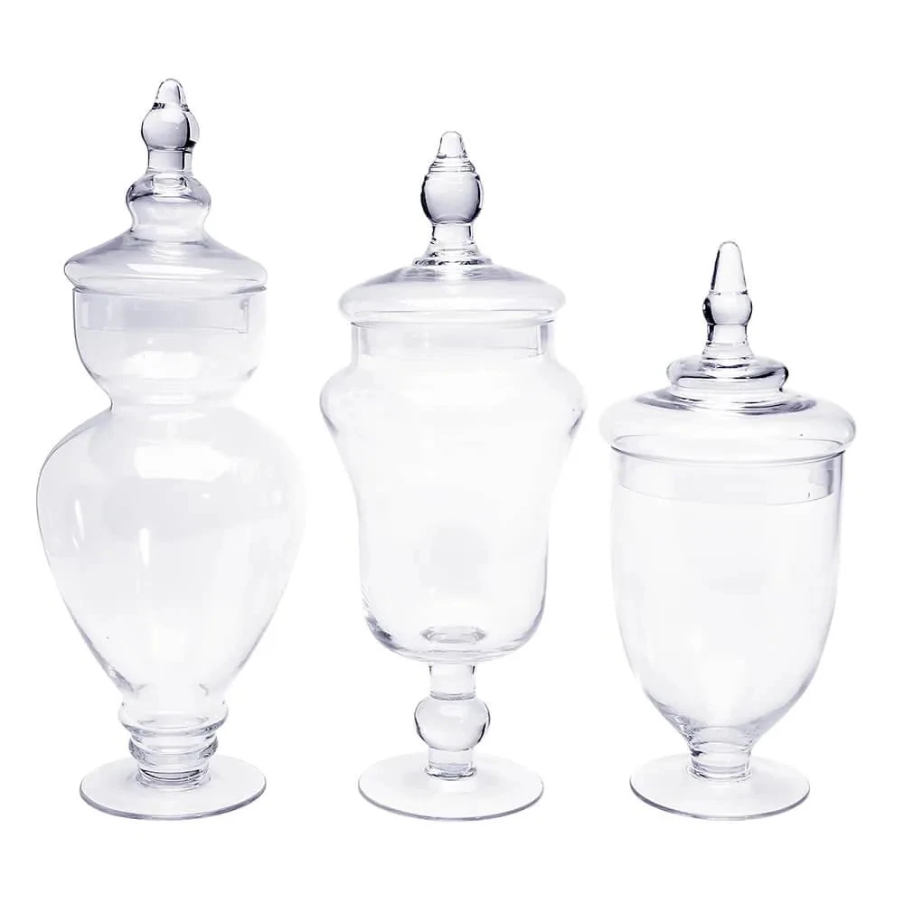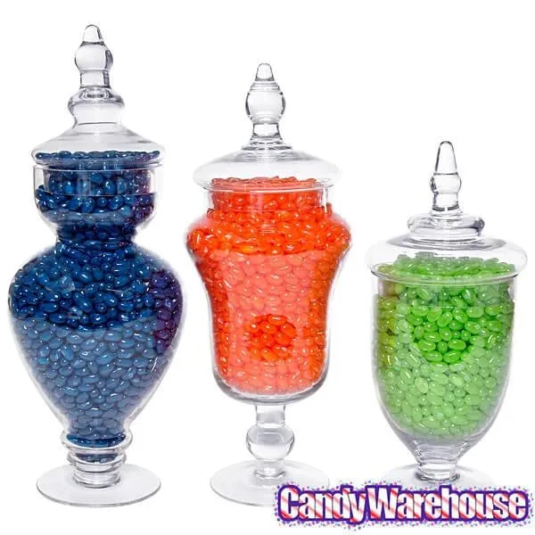 Reminiscent of the Victorian Era, but with a modern edge, this 3-piece jar set has all the style to make your candy station a glamorous stop for sweets. Although the asymmetrical heights and sizes add to the visually appealing aesthetic, they make an even bigger impression when you add different types of candy. From compact gumballs to bulky rock candy sticks, the diverse dimensions will have you covered in the beauty element. Guests will think you hired a candy buffet architect.