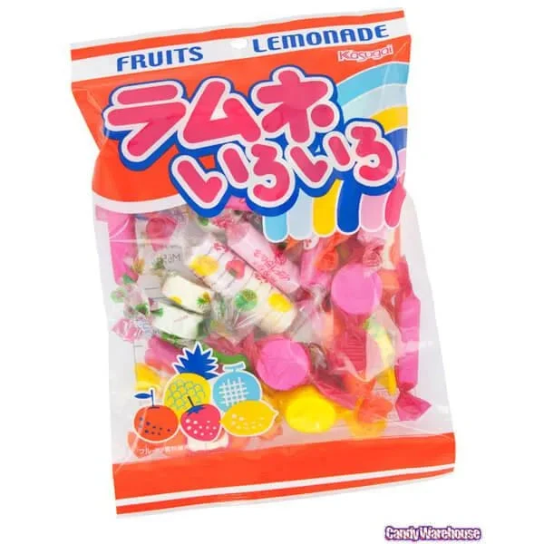 Bag contains 4.2 ounces of wrapped Kasugai Ramune Assorted Candy.