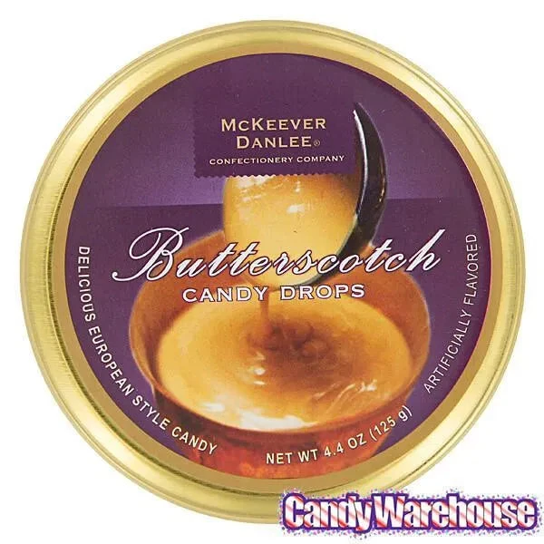 Display box contains 6 McKeever & Danlee Butterscotch Candy Bon Bons Tins, each with a net weight of 4.4 ounces.