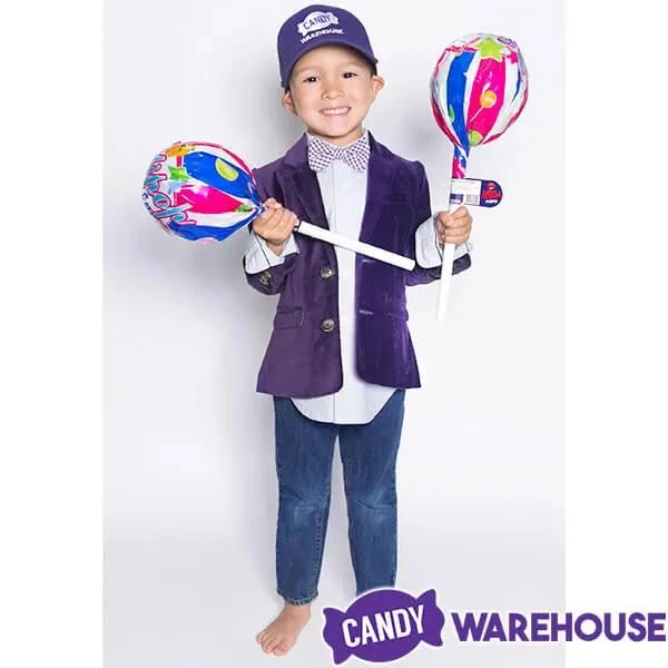 Reminiscent of the big hot air balloons that flout up into the sky, these giant lollipops are impressive and full of 24 fruity suckers! The perfect center pieces for birthday parties and other celebrations, mega lollipops are sure to surprise and delight when they discover the full bounty of candy hidden inside. Simply unwrap the giant lollipop and crack open the plastic container to release the treasure trove of sweet suckers.