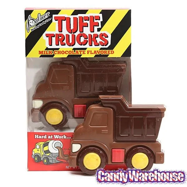 Display box contains 18 packs of Tuff Trucks Chocolate Candy Construction Trucks.