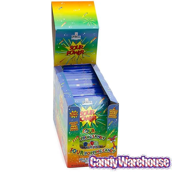 Display box contains 18 packs of Quattro Sour Power Popping Candy.