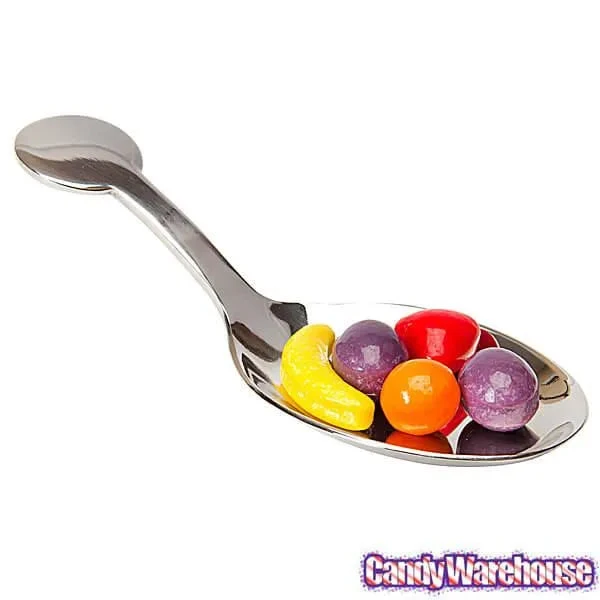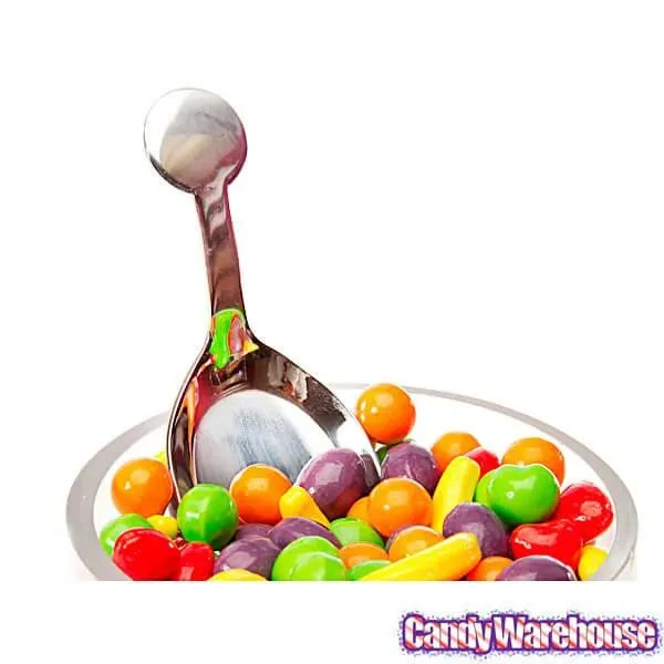 Cleverly designed with a flat base to stand on its own, this stainless steel spoon adds class to any candy display. And it’s very shiny!