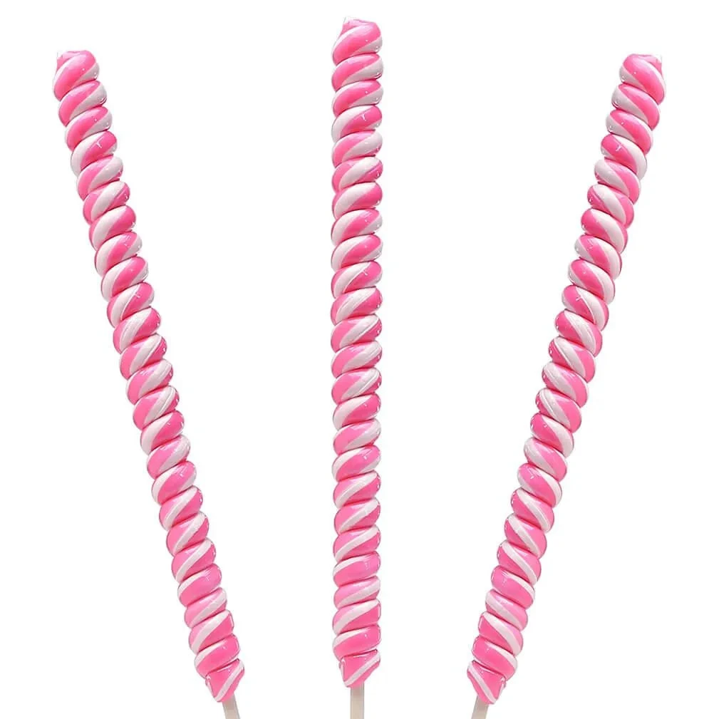 Why do we call this giant lollipop a Twist Pop? Is it because the strawberry-flavored delicacy winds around its stick like a tornado of fantastic, fruity flavor? Or maybe because of the manner in which the pink and white whirls spiral down like a candy staircase in a mansion of lollipop awesomeness? Either way, we love the way these giant, foot-and-a-half tall lollipops work to add extra height in our rosiest of candy buffets just as much as we adore the way the juicy flavors burst forth with each lick! Part decoration, part delicacy, 100% perfect party material.